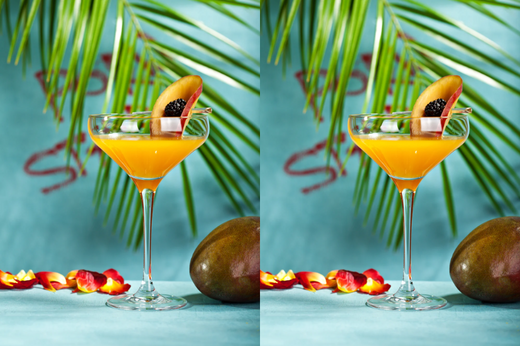 Collect your chilled Martini glasses and strain the cocktail into the chilled glasses.