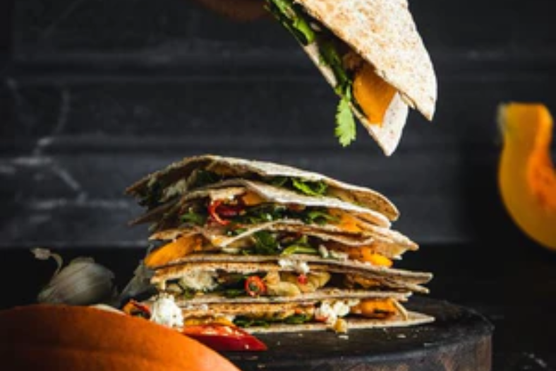 Divide the mixture onto 4 of the wraps and spread out evenly.