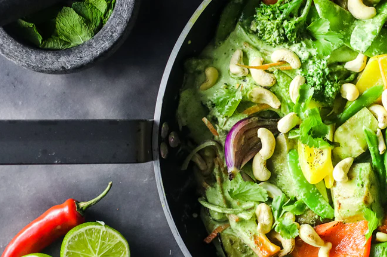 It’s so easy to make big batches of this flavoursome green Thai curry. A mix of spices and softer coconut undertones it is perfect for healthy mid-week dinners and lunches.