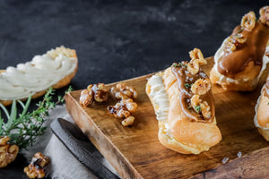 Makes 24 Ingredients: For the choux pastry: 450ml water 170g butter 200g plain flour 5...