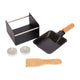 INCLUDES: a sturdy metal rack, a non-stick pan, a wooden spatula and two candles