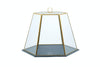 3pc Serveware Set with 2-Tier Brass Cake Stand; 2-Tier Geometric Brass Serving Stand & Glass Serving Cloche with Slate Bases