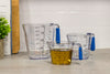 The Colourworks Blue Three Piece Measuring Jug Set features three handily-sized transparent measuring jugs, fantastic for a variety of tasks around the kitchen. This set includes a 200 ml jug, a 400 ml jug and a 900 ml jug. Each jug is clearly marked with fluid ounce (fl oz), millilitre (ml), pint (p) and cup (c) measurements, making it easy to easily follow recipes – even those featuring American measurements. So, you can save loads of time on converting or working out the equivalents.
