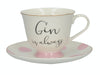 This teacup and saucer set is from the Ava & I collection, perfectly balancing feminine prettiness with modern style and a dash of sass. The saucer is spotted with pretty pastel pink polka dots, while the teacup has a matching pink foot. Each piece is framed with a fine gold rim and a playful "Gin is always a good idea" slogan continues across both pieces. Made of fine china and delicately shaped, this is a sophisticated way to enjoy a cheeky gin and tonic at the end of the week! The set is presented in a luxury hat box to complete this stylish gift. Cup capacity: 200ml.