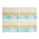 Dinnertime will quickly become the most sparkly time of the day, with these placemats on hand. Soft shades of teal and cream are divided by a scattering of golden specs in this ‘Golden Reflections’ inspired placemat design, which echoes moments of natural beauty, like a summer sunset over the sea. The rectangular shape is topped with a luxury, lacquered surface that’s wonderfully smooth to touch. It’s stain resistant, easy to wipe clean and will work hard to protect your surfaces. At 0.5 cm thick and backed with cork, the mats will keep hot dishes away from your tabletop with a heat-resistance of up to 120°C. To seal the deal, the edges of the mats are lacquered too, so they’re durable and resistant spills and moisture from wet plates and dishes.