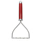 The KitchenAid Potato Masher is essential for smooth mashed potatoes, vegetables or fruits. The head is made of thick stainless steel, which is durable and rust resistant. The handle is well-balanced and ergonomically designed for comfort and smooth operation under heavy use. The glossy handle features a debossed logo, as well as a satin chrome-plated bolster and a hanging loop. It's dishwasher-safe for easy cleanup.