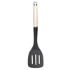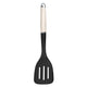 The KitchenAid Slotted Turner is designed for greater control when lifting and turning food. This strong, durable turner is safe to use on all cookware, including non-stick, and is heat resistant to 232°C/450°F. The glossy handle features a debossed logo, as well as a satin chrome-plated bolster and a hanging loop. It's dishwasher-safe for easy cleanup.