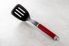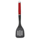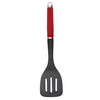 The KitchenAid Slotted Turner is designed for greater control when lifting and turning food. This strong, durable turner is safe to use on all cookware, including non-stick and is heat resistant to 232°C/450°F. The glossy handle features a debossed logo, as well as a satin chrome-plated bolster and a hanging loop. It's dishwasher-safe for easy cleanup.