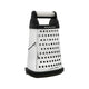 This KitchenAid Box Grater features four blades - coarse, medium, fine and slice - to quickly grate cheese, chocolate, breadcrumbs and other ingredients. A storage container slots into the base of the grater to catch grated food, helping to reduce mess and allowing for easy storage. The container is marked with ½ cup, 1 cup, 1½ cup and 2 cup capacities, as well as their millilitre equivalents. Dishwasher safe for easy cleanup.