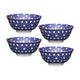 Set of 4 KitchenCraft Blue Floral Geometric Print Ceramic Bowls
