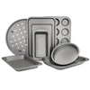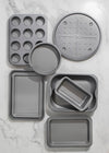 The beauty of this set is that you can rely on it for bake after bake, and roast after roast. All eight pieces are made of strong carbon steel. They all have rolled edges to prevent warping, and they absorb heat evenly, so you can rest assured your food will cook thoroughly.