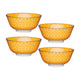 This is a set of 4 bowls (KCBOWL07). A good set of bowls are the cornerstone of every kitchen crockery set and, it doesn't get much better than these brightly coloured orange bowls. The printed design features busy, diamond patterns on the outside and polka dots in the middle, separated by a bold, bright blue rim.