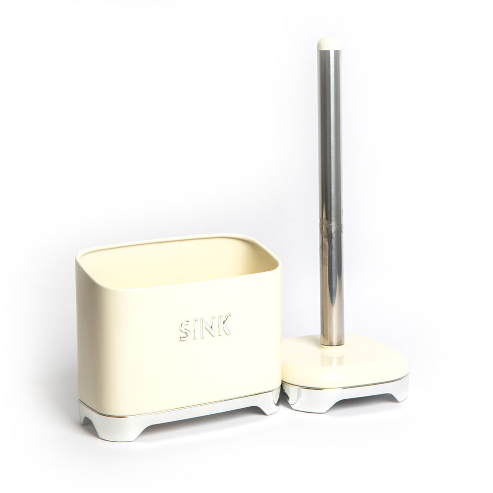 2pc Vanilla Cream Kitchenware Set with 17.5cm Towel Holder and Steel Sink Tidy - Lovello