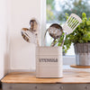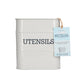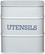 TIMELESS LOOK: features a cool French Grey powder coating, and 'UTENSILS' printed on its front