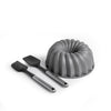 MasterClass 3pc Bakeware Set with Cast Aluminium Swirl Decorative Cake Pan and 2x Soft Grip Spatulas