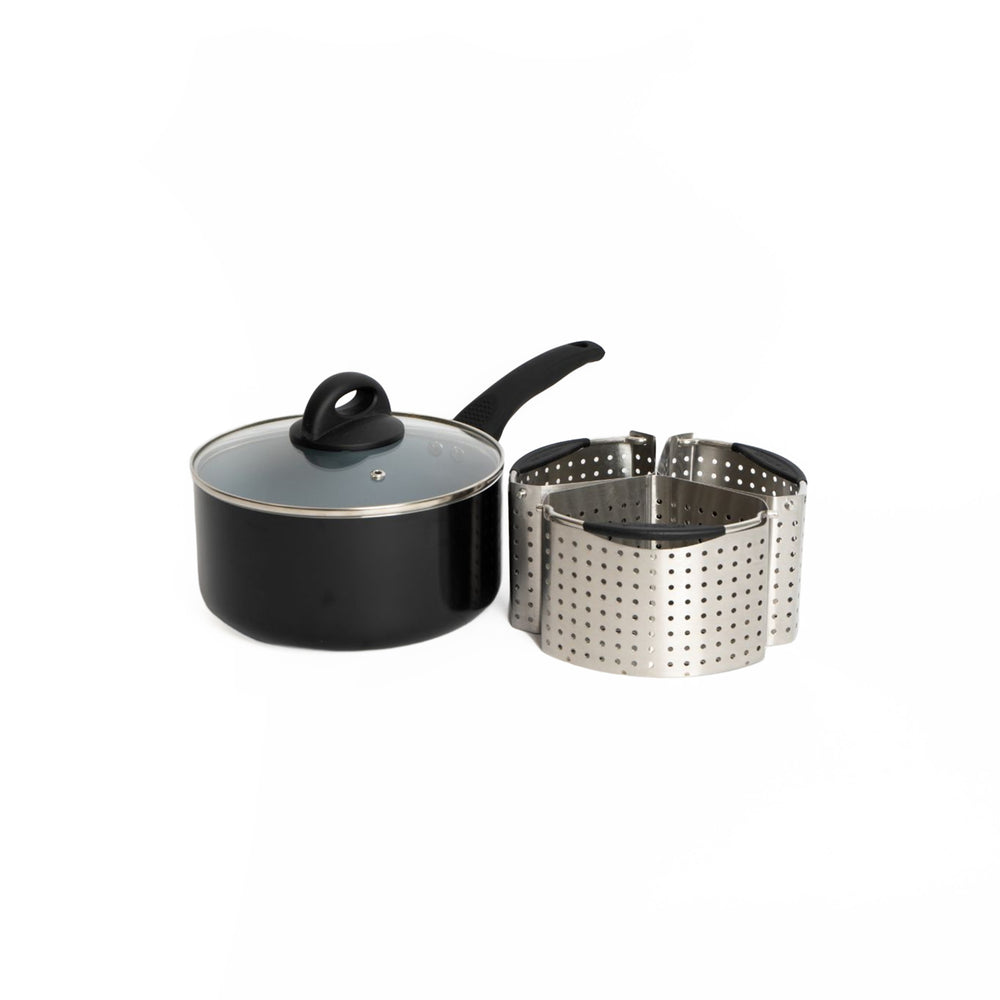 4pc Cooking Set Including 20cm Ceramic Non-Stick Eco Saucepan with Lid and 3x Stainless Steel Saucepan Divider Baskets