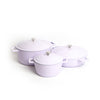 3pc Cookware Set of Lavender Non-Stick Cast Aluminium Casserole Dishes, 20cm/2.5L, 28cm/4L and 28cm/5L - Gift Boxed
