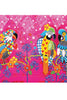 INSPIRED BY IMAGINATION: 'Araras' is a smile-raising scene of dotty parrots, elegant filigree patterns and little tropical flowers