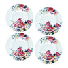This is a set of 4 dinner plates (MKCLODP). Inspired by the picturesque fishing village of Clovelly with its beautiful pebble beaches and stunning gardens, this timeless collection by Mikasa sees a mix of gorgeous polka dot, floral and nautical prints over a selection of premium porcelain tableware.