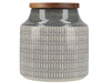 Ideal for modern and classically designed kitchens alike, this striking storage jar is made of high-quality ceramic and influenced by tribal-inspired homeware trends. It’s suitable for keeping all sorts of kitchen items safe – like snacks, treats or general bits and pieces. The jar is hand-decorated in a smoky-grey intricate marking pattern, in keeping with the untamed ‘Drift’ style. It also has a beautiful wooden lid with tight silicone seal to help keep contents fresher for longer. Mix and match with the other storage jars available in this collection: this jar comes in two alternative designs, one featuring a blue batik-inspired pattern, the other a delightful array of hand-printed cacti. It would also make a great gift for friends who love a stylish, tidy kitchen! The jar itself is safe for the dishwasher, while the lid should be wiped clean to maintain its wonderful natural grain pattern.