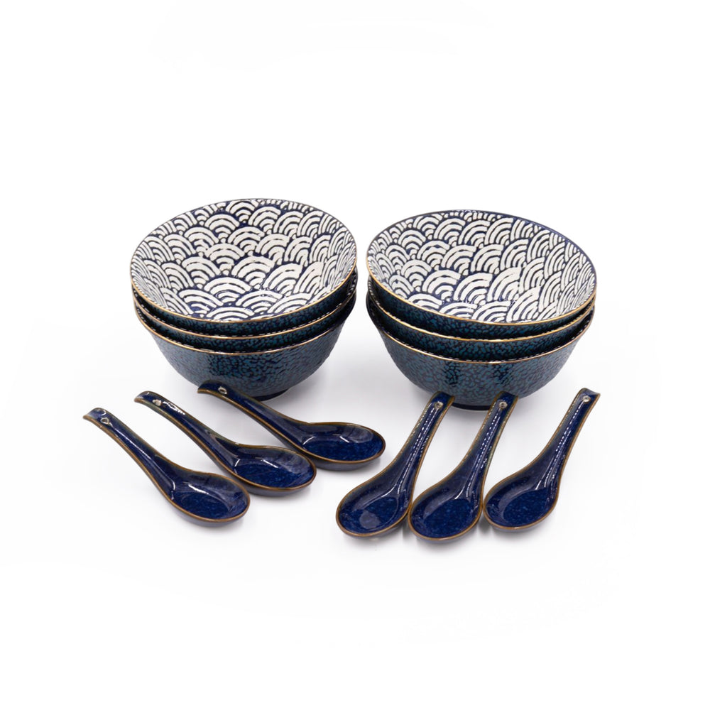 12pc Porcelain Bowl and Spoon Set with 6x Rice Bowls and 6x Rice Spoons - Satori