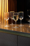 • SET INCLUDES: four crystal ridged white wine glasses