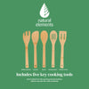Bring the amazing benefits of cooking with bamboo to your kitchen. Natural Elements' bamboo kitchen utensil set features five key cooking tools crafted from this super material.